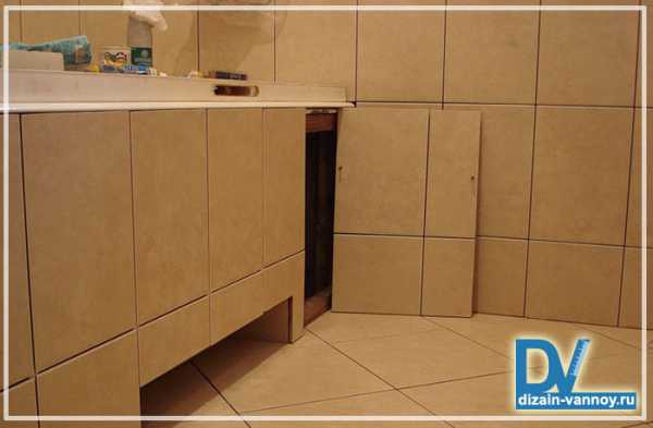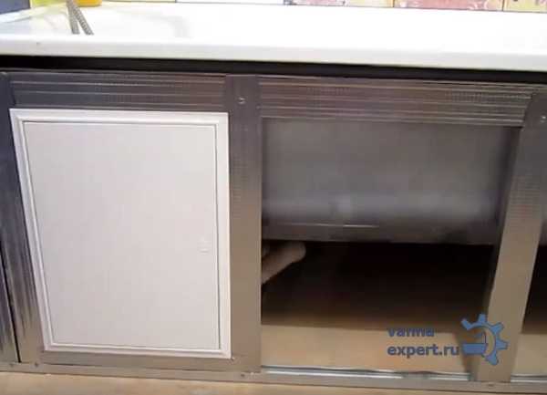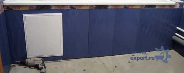 Устанавливая глухую панель, не стоит полностью закрывать все пространство. Для доступа к коммуникациям необходимо сделать люк, облицованный снаружи теми же материалами, что и основная конструкция. Для снятия люка можно использовать съемные ручки на присосках.