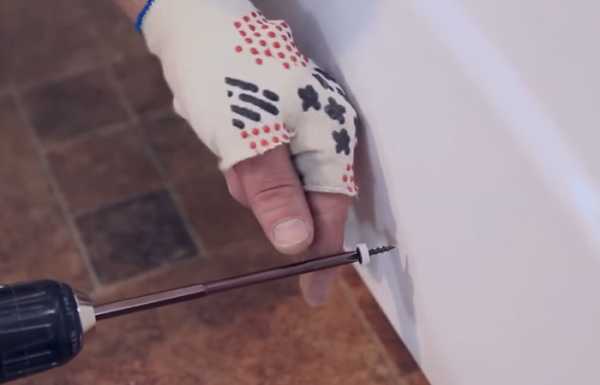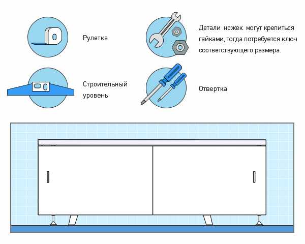 - Подкрутить ножки настолько, чтобы между верхней частью изделия и ванной не осталось зазора – до упора