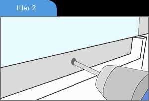 - Под бортиком чаши, параллельно напольному профилю, монтируют верхний направляющий элемент. Его края аналогично соединяют с верхними концами вертикальных направляющих на двух стенах.