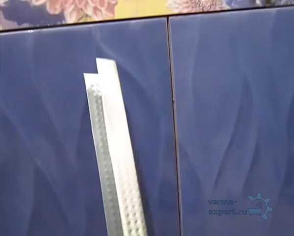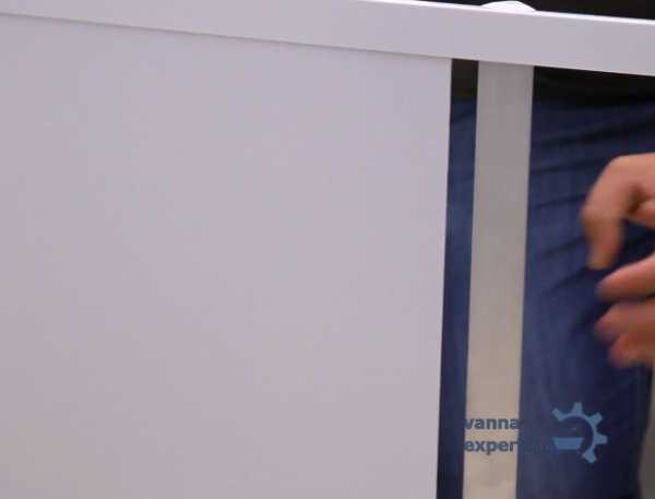 - Изделие располагают сбоку ванны, заводя в углубление под ее край. Здесь важно выставить стенку строго вертикально.