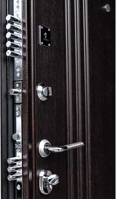 Максимальная безопасность входа обеспечивается и рядом дополнительных мероприятий – установкой внутренней защелки, металлических наличников, скрытых петель, элементов сигнализации. Об этом также забывать не стоит.