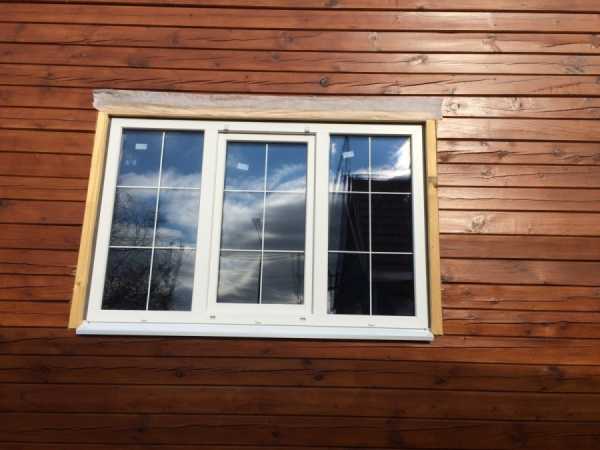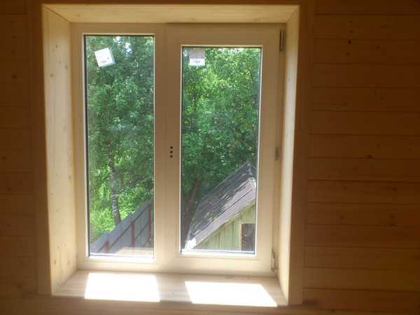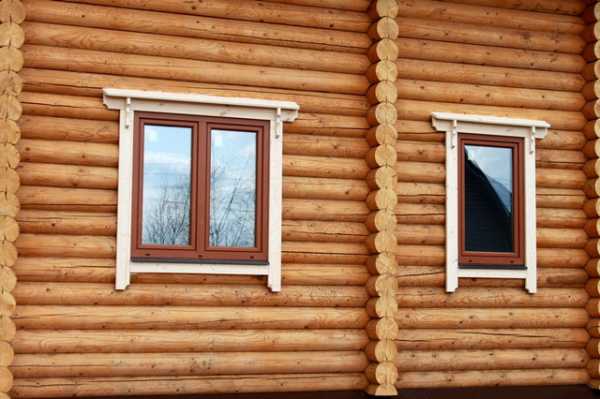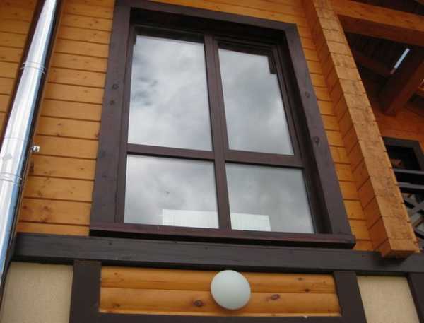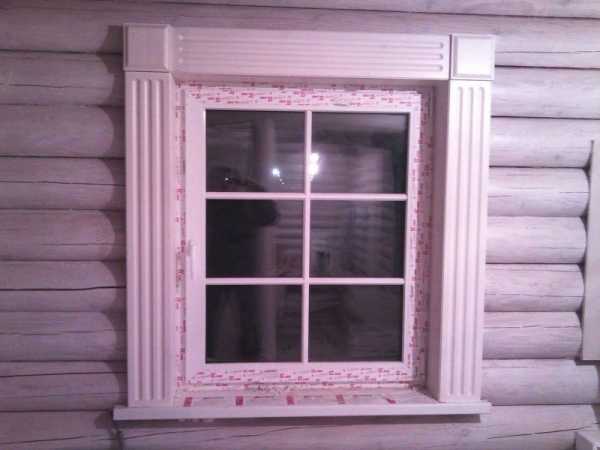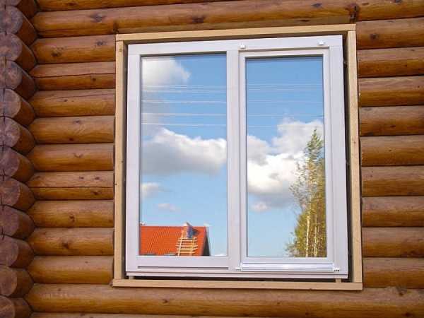 Пластиковый белый наличник на металлопластиковых окнах современного деревянного дома