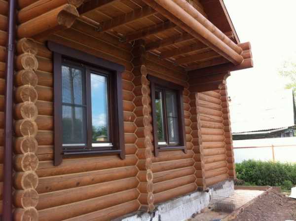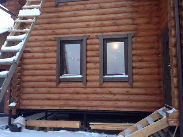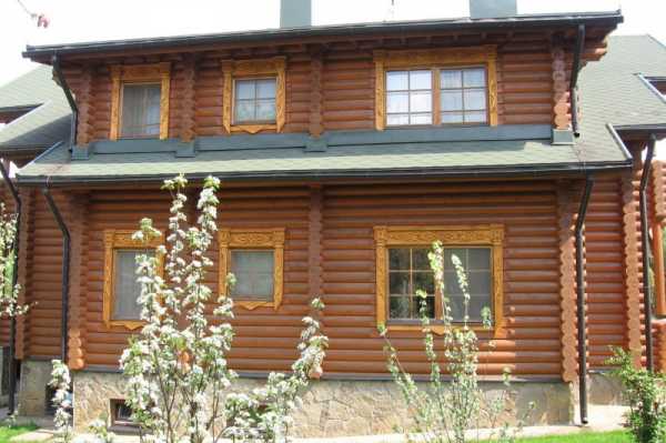 Декоративные наличники на окнах современного дома с деревянного сруба