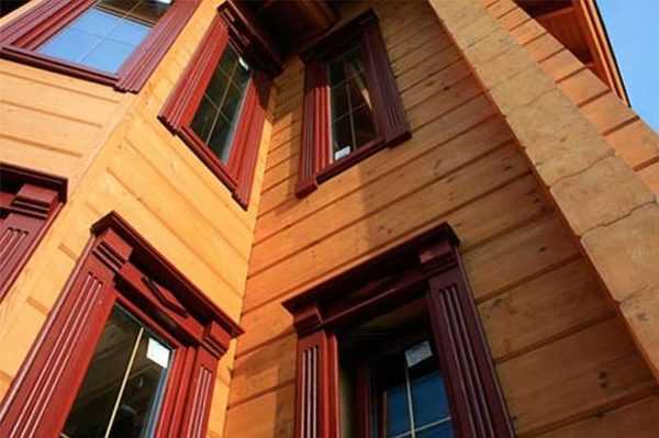 Совет дизайнеров: Чтобы наличники и стены дома выглядели гармонично, лучше применять одну породу дерева. При одинаковой текстуре придать наличникам другой цвет можно специальными красками или составами.