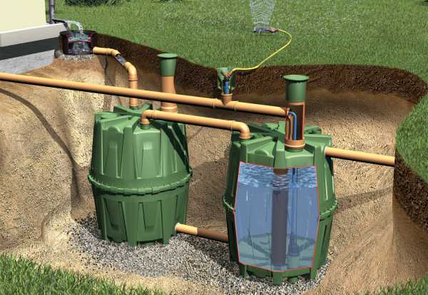 Сначала стоки в такой бытовой установке скапливаются в небольшом резервуаре, а по мере его заполнения откачиваются внутренним погружным насосом в канализационную трубу