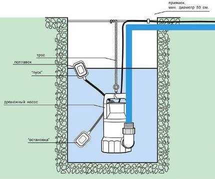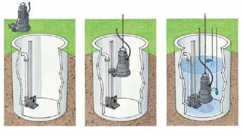Монтаж погружного фекального насоса производится непосредственно на дно сливной ямы либо подвешивается на высоте в 10–20 см над ним
