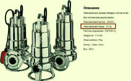 - Производительность – объем стоков, которые насос способен перекачать за определенное время. Этот показатель напрямую зависит от мощности, при мощности 500 Вт за минуту будет перекачано 150 литров, а при 1,5 кВт – до 600 л.