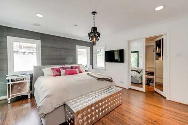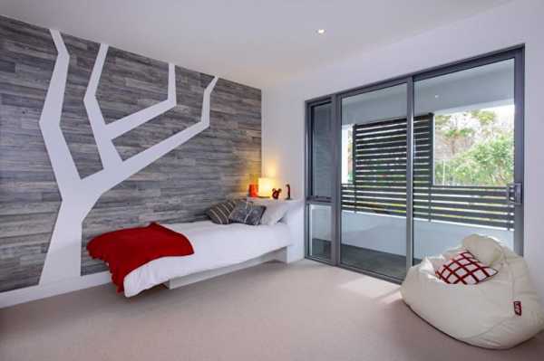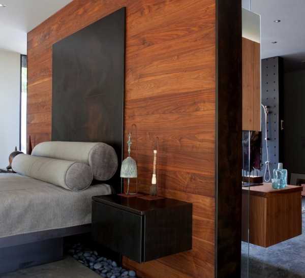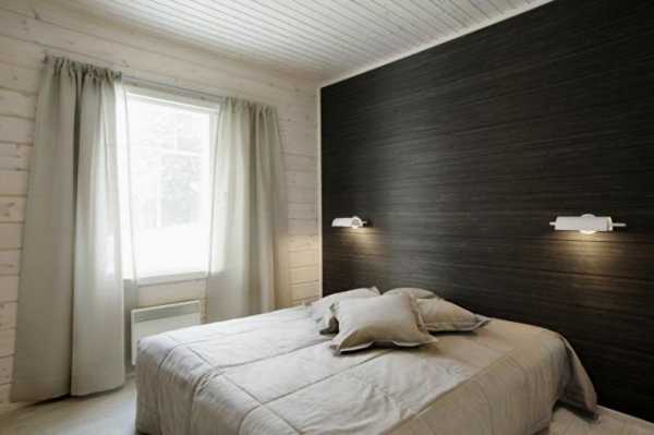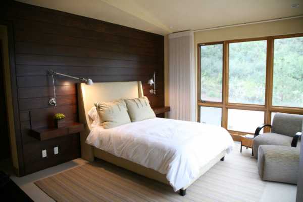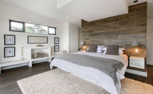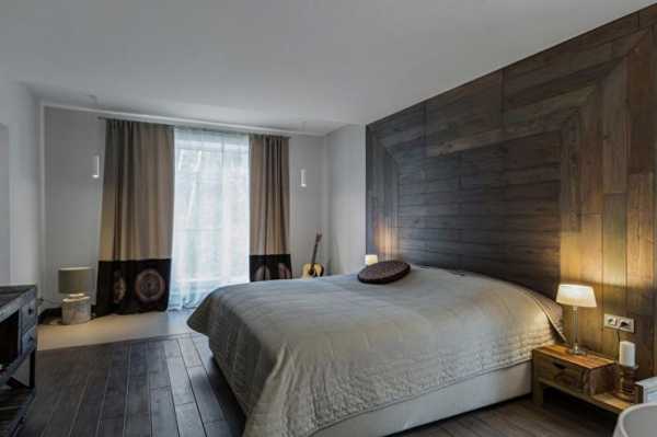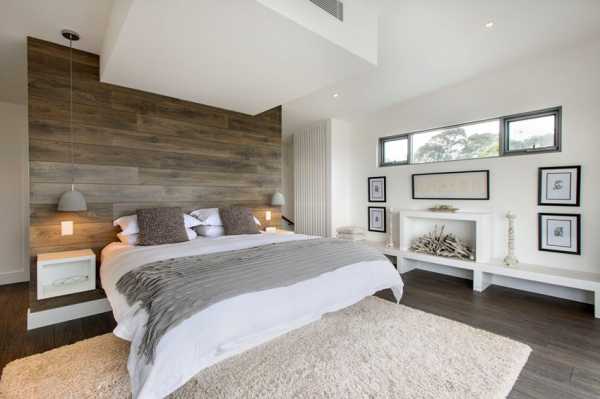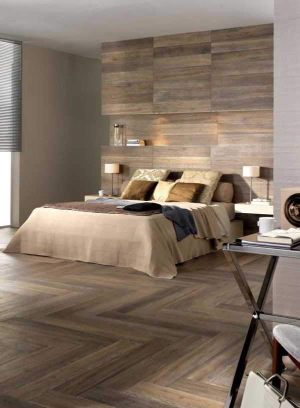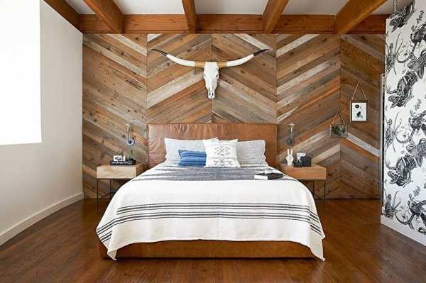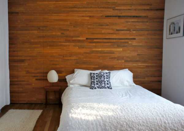 Очень часто дизайнеры при оформлении интерьеров используют ламинатную доску в спальне в качестве изголовья кровати. По их мнению такое решение позволяет придать комнате неповторимый шарм и особое настроение.