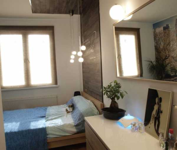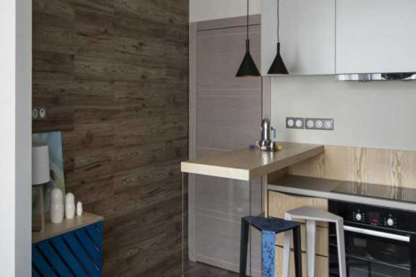 Ламинат на поверхности пола и стенового покрытия, выбранные в единой гамме цветов, расширяют визуально помещение.