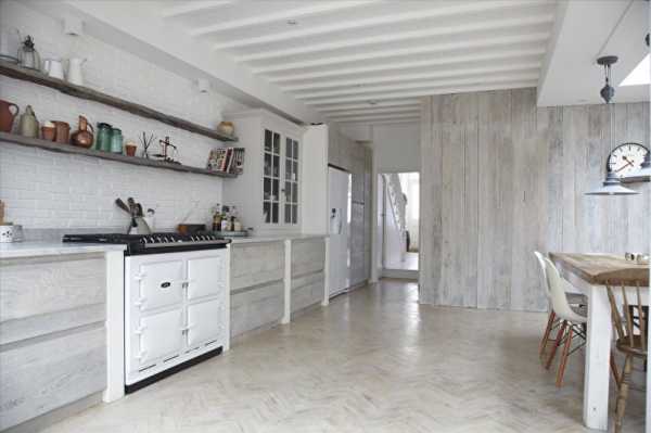 Популярны сегодня серые тона состаренной древесины — сосны и дуба
