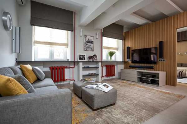Горизонтальная кладка ламинатной доски холодного серого цвета в гостиной