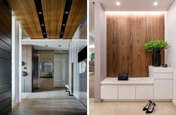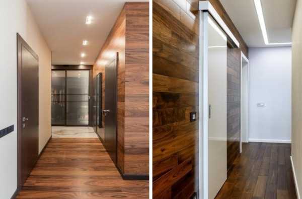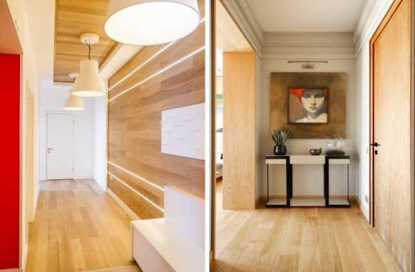 Чаще всего в прихожей делают панели на высоту равную длине ламината, либо отделывают одну из стен полностью, чаще ту, где находится мебель для прихожей.
