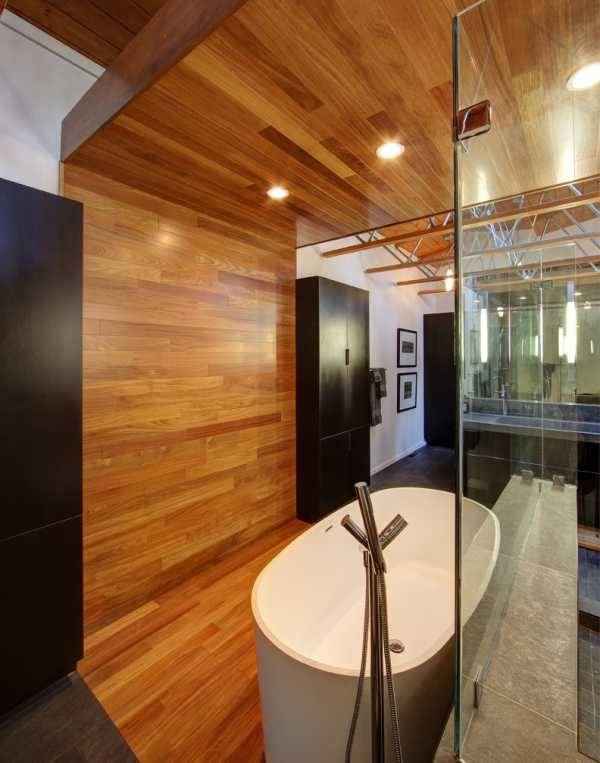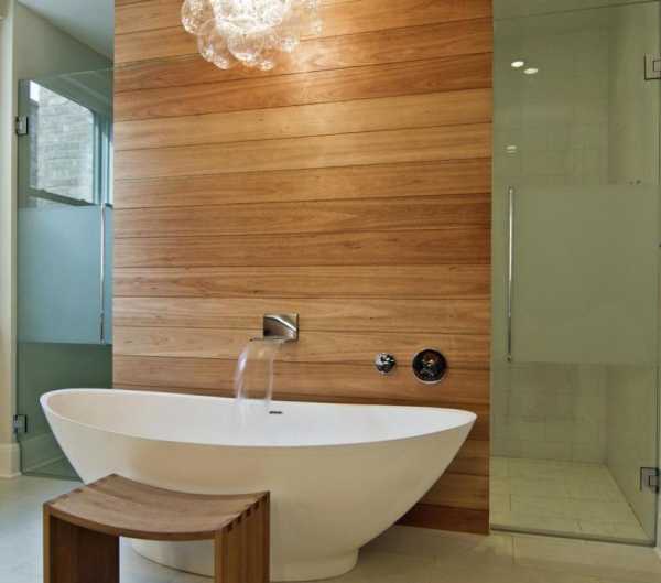 Ламинированное влагостойкое покрытие стены в ванной комнате