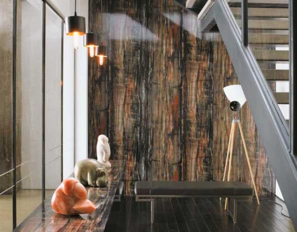 Покрытие имеет качества, позволяющие создать уникальный дизайн с ламинатом на стенах.