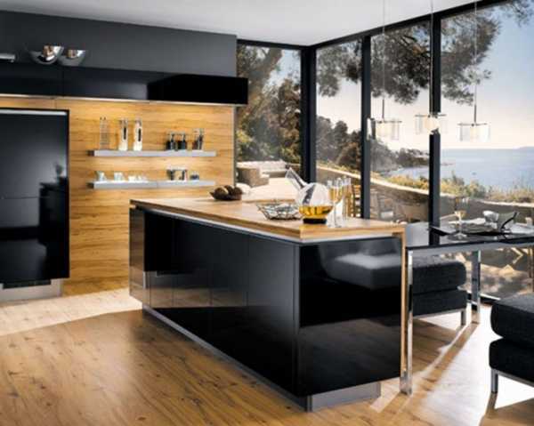 На кухне ламинатом чаще всего отделывают фартук над кухонным гарнитуром. Цвет подбирают таким образом, чтобы он обязательно гармонировал с фасадами мебели. Такой фартук практически ничем не уступает керамической настенной плитке по эксплуатационным качествам. При этом он гораздо дешевле и удобнее в монтаже. Очень легко осуществлять уход за санитарным состоянием зоны приготовления пищи, если на кухне произведена отделка стен ламинатом. Фото таких решений поражают чистотой и ухоженностью самого подверженного загрязнениям пространства в доме.