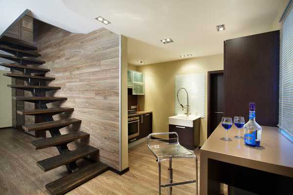 Украшение высоких стен лестничных пролетов ламинатной доской