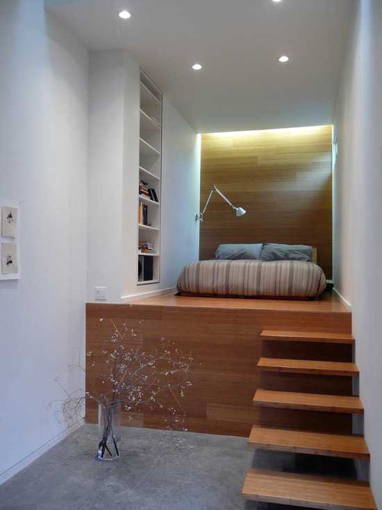 Интересная дизайнерская задумка, пол плавно переходящий в изголовье кровати