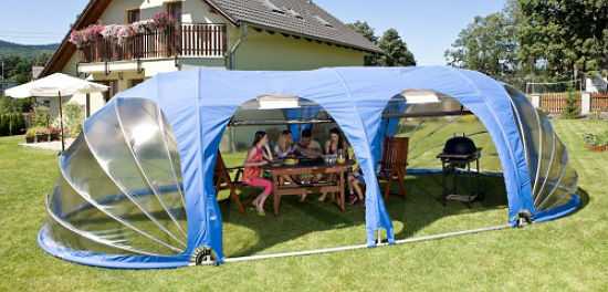- защита от осадков площадки перед входом, бассейна, проходов вокруг дома;
