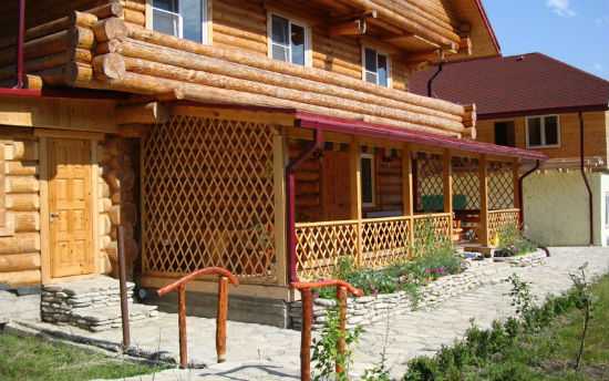 Материалы перед монтажом тоже следует подготовить: дерево пропитывают антисептиком, олифят или окрашивают в выбранный цвет. Пиломатериал выбирают сухой и обязательно ошкуренный, иначе под корой быстро заведутся древоточцы.