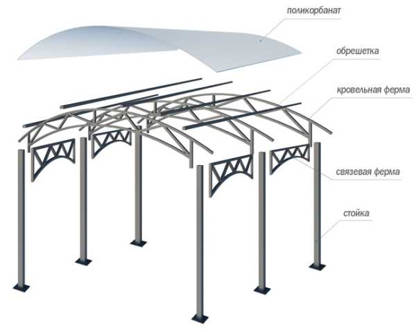 Кровлю обычно покрывают профлистом, шифером или оцинкованным материалом. Металл для каркасной конструкции обладает пластичностью и прочностью. Он подходит для разных стилей оформления. Подобные конструкции можно возводить своими руками.