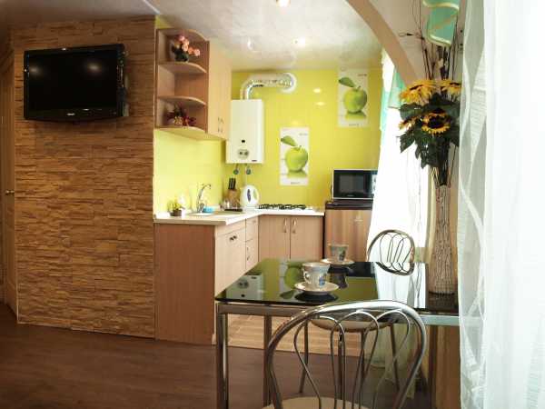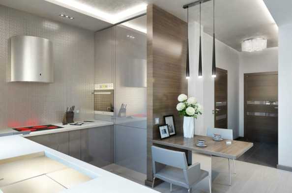 Стол лучше выбрать такой, чтобы складывался. То есть идеально если постоянно за ним может сидеть одни или два человека, ну а если понадобится – Вы его разложите и сможете усадить гостей. Еще, как вариант, можно сделать барную стойку – это достаточно экономит пространство, да и очень стильно.