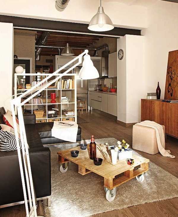 Она может быть абсолютно разноплановой, что подчеркнет стиль лофт. Диван выбирайте большой, в стиле винтаж.