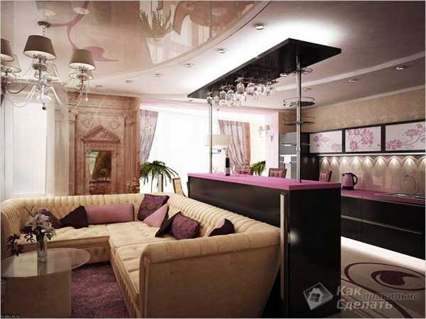 | В качестве зонирования подойдет перегородка или барная стойка – отказ от лишних стен | |