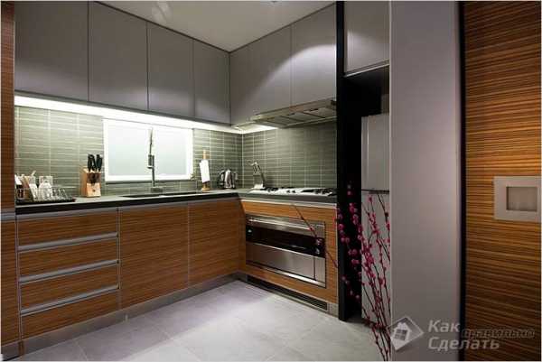 Прекрасная идея визуального расширения пространства – поставить в дальнем углу самый высокий предмет (например, холодильник).