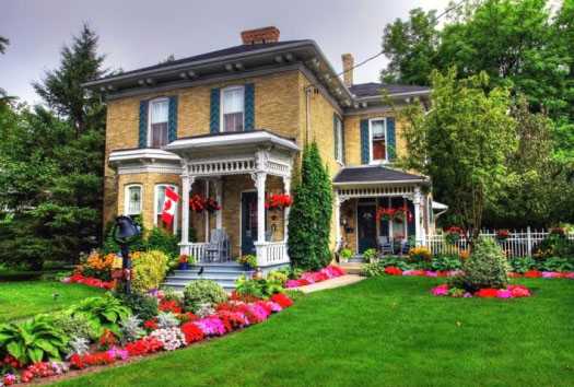Ближайшие к дому цветы должны соответствовать оттенкам стен.