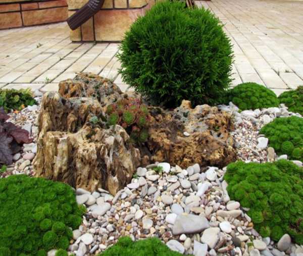 Прекрасно будут смотреться здесь высаженные хвойные деревья или кустарники, маленьких размеров, то есть карликовые, которые не будут сильно привлекать внимание окружающих.