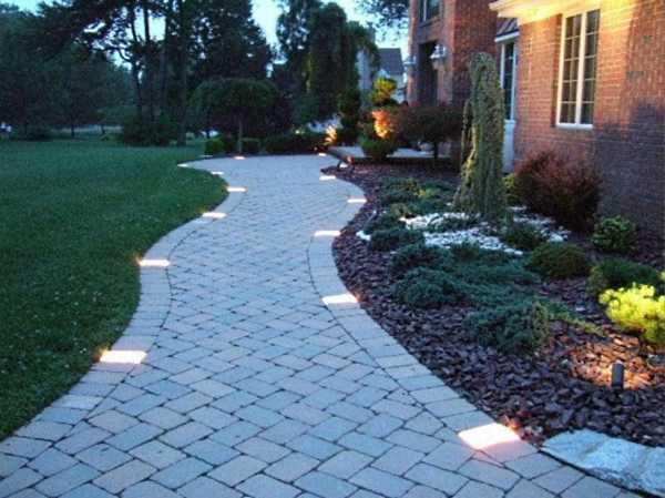 По краям можете сделать бордюр. Ширина такой дорожки – около полутора метров, чтобы на ней могли разойтись два человека. Перед входом в дом её можно слегка расширить для удобства.