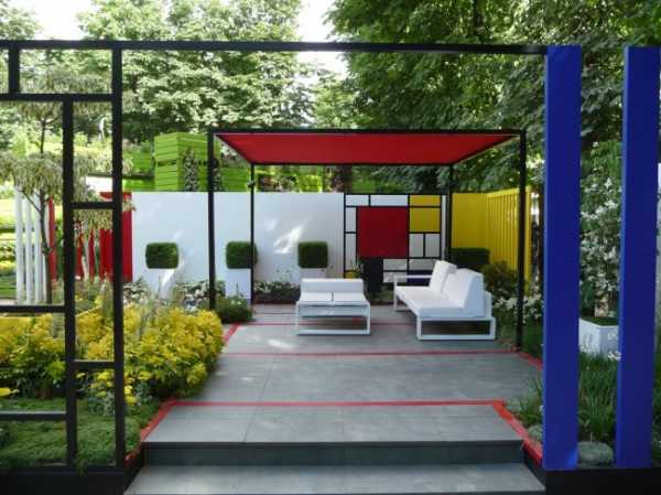 Согласно направлению неопалстицизм дизайнеры предоставляли такую идею для оформления палисадника своими руками, как геометрический палисадник Мондриана: