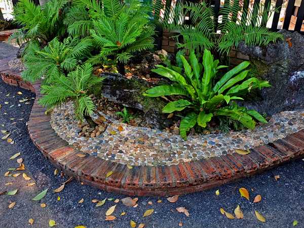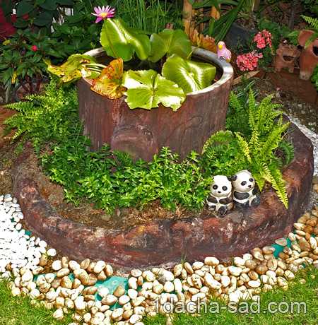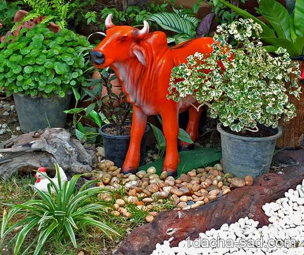 Небольшие емкости с водой, гравийная засыпка, маленькие керамические фигурки — все эти нюансы создадут неповторимый характер вашего палисадника.