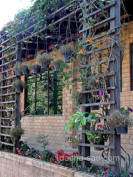 - Ампельных растений в контейнерах, которые расположены сразу на входе в зону палисадника