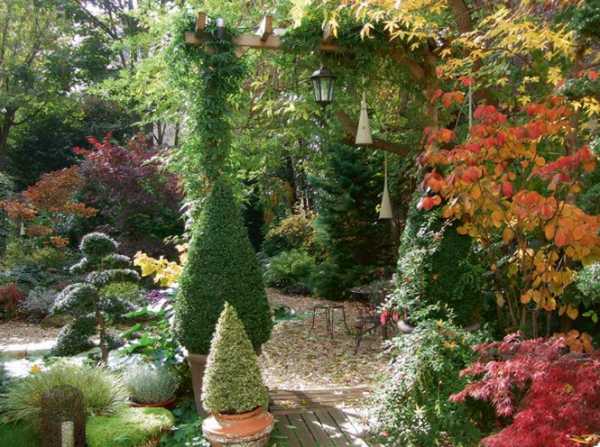 - Декоративных арок, которые украшают всю прогулочную зону вьющимися растениями, такими как плетистые розы и девичий виноград
