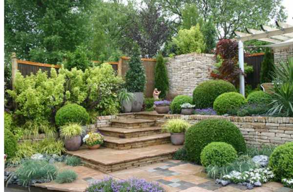 Следующим приёмом преображения палисадника является использование ярусов. Растения одного яруса будут немного возвышаться над другими, а одни декоративные каменные перепады станут сменяться на другие, придавая оригинальности лужайке.