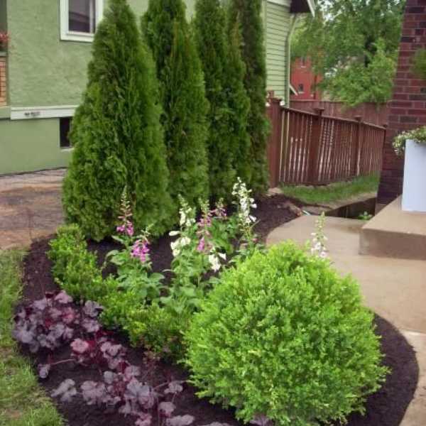 Древесные растения и кустарники, которые составляют основу дизайна палисадника перед домом: