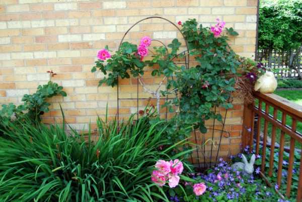 Декоративными арками, перголами и решетчатыми опорами с вьющимися растениями украшают входную часть сада, обустраивают внутренний двор и уголок семейного отдыха, используют их как ширму в зоне хозяйственных построек. Цветущие лианы живописно смотрятся на придомовых террасах.