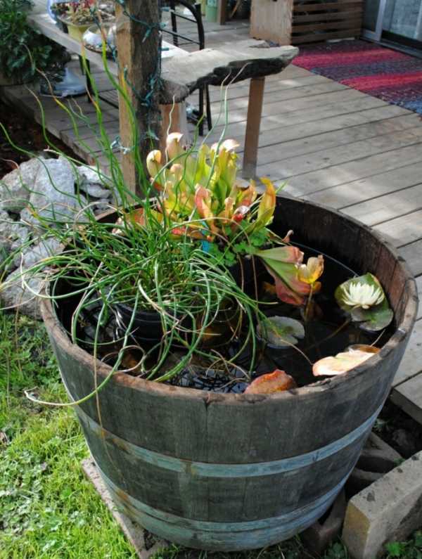 Необычный способ использования винного бочонка в интерьере сада