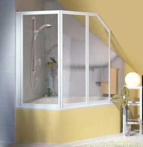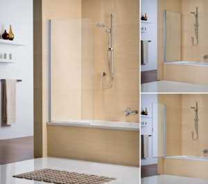 - Раскладные изделия, которые состоят из стёкол, складывающихся по принципу гармошки. Такую конструкцию можно плавным движением руки сложить возле поверхности стены. При этом её монтаж не вызывает затруднения в ваннах любого типа.