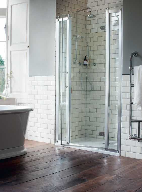 Что касается конструкции дверок, то, как уже было сказано, они бывают двух видов: распашные и раздвижные. Если в ванной комнате совсем мало места или под кабинку для душа выделен только лишь закуток, имеет смысл выбрать конструкции со стеклом с раздвижными дверками, но в этом случае пол должен быть очень ровным.