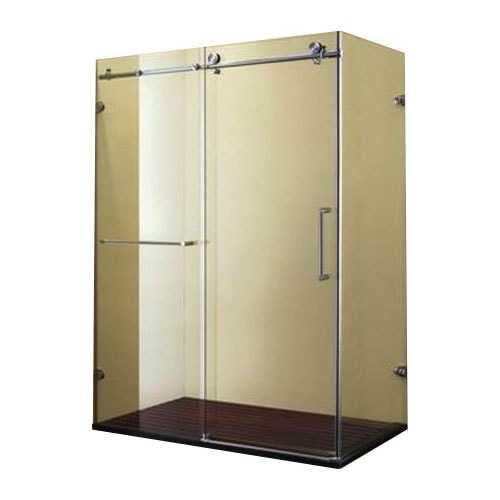 Практически всегда душевые кабины со стеклом затонированы и представляют собой несколько пластин ограждения из стекла или оргстекла в форме полусфер от пола до верха конструкции, без щелей и просветов. Пластины вставлены в профиль в специальные пазы, чтобы они могли передвигаться, образуя двери. Между собой две пластины могут защелкиваться на фурнитуру, а чаще просто задвигаются внахлест.