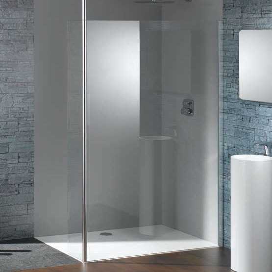 Ограждения из стекла (оргстекла) для душа могут быть установлены не на кабинке, а прямо на поддоне, образуя прозрачный прямоугольник. Такие душевые конструкции значительно экономят место в ванной комнате. Они открываются при помощи распашной или раздвижной двери и бывают двух видов:
