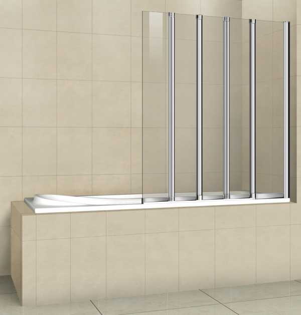 Многосекционная перегородка на шарнирах складывается по типу гармошки. С ее помощью можно огородить как всю ванну, так и ее часть. Такая ширма удобна для угловых полукруглых ванн, так как за счет конструктивных особенностей повторяет их геометрическую форму. Однако у ширм есть один недостаток: конструкция не слишком надежна, поскольку крепится только на одной плоскости, на которую приходится вся нагрузка.