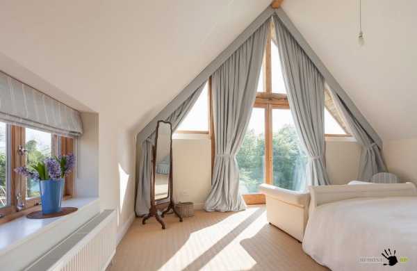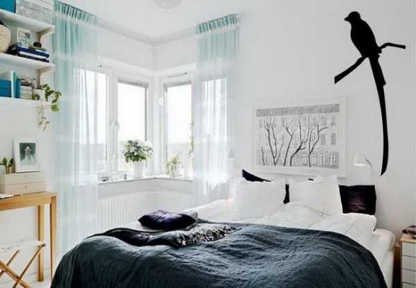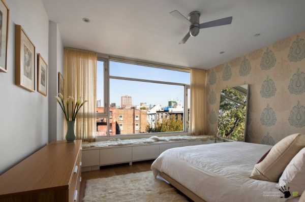 Угловое окно очень удачно смотрится в маленькой спаленке, расположенной, к примеру, на мансардном этаже. Такой элемент интерьера наполнит небольшое помещение ярким светом, а сразу после пробуждения можно будет любоваться из окна окружающей природой.