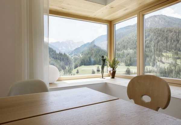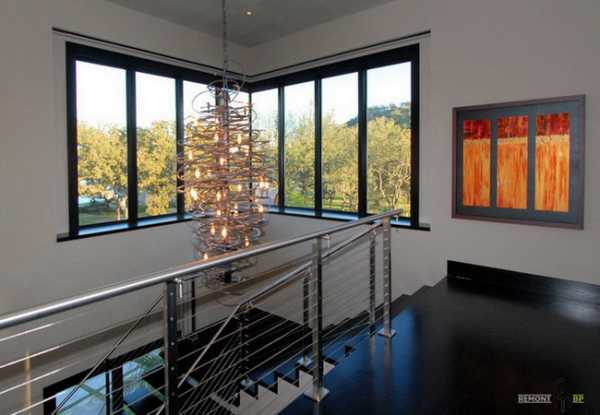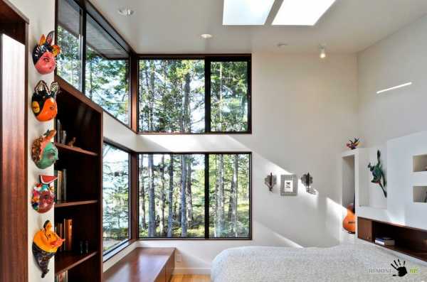 Если же мы сами проектируем коттедж, то можем выбирать любую форму и современных окон, и дверей. Здесь важно учитывать некоторые нюансы. Архитектор часто делает окна, исходя из формы фасадов, но их бывает сложно органично вписать в стилистику интерьера. Вообще в коттеджах хочется максимально открыть вид на природу, сделать окна до пола с минимумом переплетов, чтобы интерьер был связан с природой. Современные окна фото: