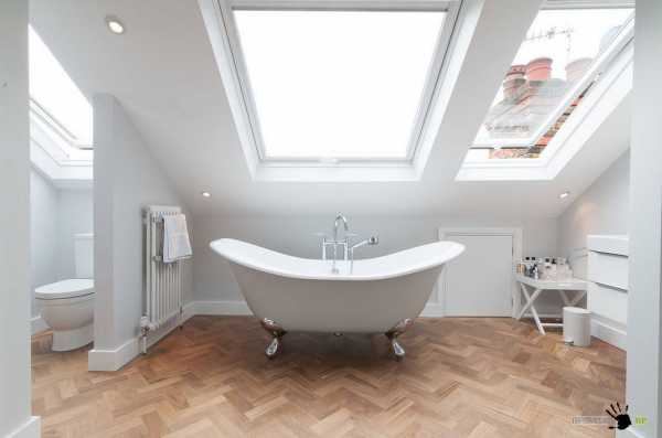 Узкую ванную комнату с угловым окном можно расширить при помощи зеркальной отделки стен. Яркое естественное освещение, попадая через окна в помещение, будет отражаться от зеркал, делая комнату еще более светлой. Эффект подчеркнут и светлые тона отделочных материалов, использованных в интерьере