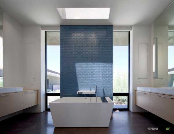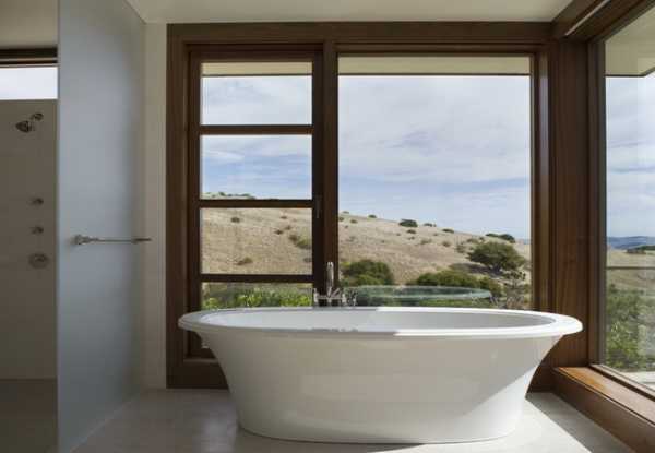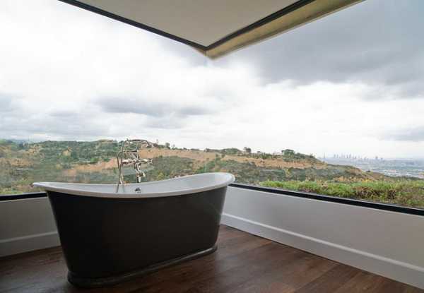 В дизайне ванной комнаты угловое окно может стать центральным акцентом интерьера, иногда его даже не потребуется дополнять другими деталями. Если комната расположена на верхних этажах здания, через панорамное окно будет открываться превосходный вид на город или на природу.