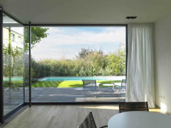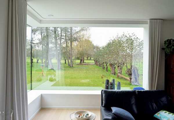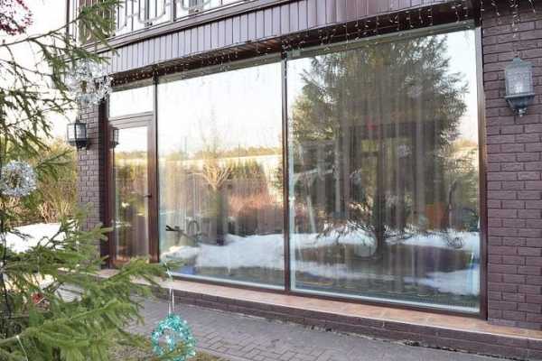 Новинка, которую я видела в Москве безрамное остекление, когда окно в большой проем устанавливается с помощью скрытого монтажа. В итоге мы видим стекло и не видим раму. В коттеджном строительстве было бы интересно применить такую конструкцию окна.