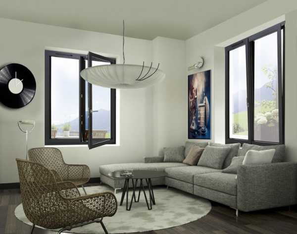 Нельзя не упомянуть о поворотнооткидных механизмах для окон, оснащенных запирающими элементами особой формы, которые препятствуют взлому современного окна, в том числе и механизмов со специальными замками с ключом. К тому же они легко открываются, и жильцы дома или квартиры могут смотреть на пейзаж за окном, не упираясь взглядом в малоэстетичную решетку. Современные окна фото: